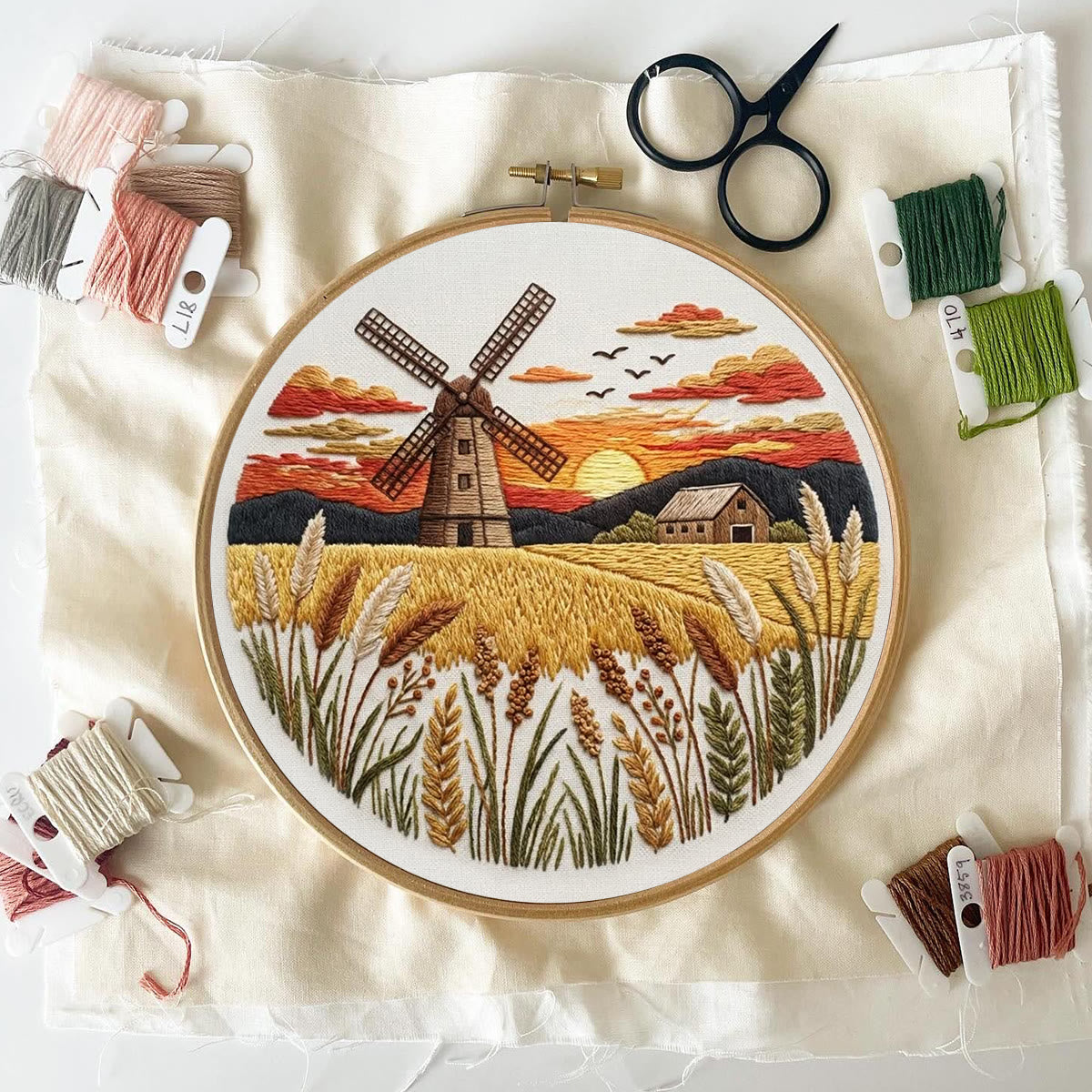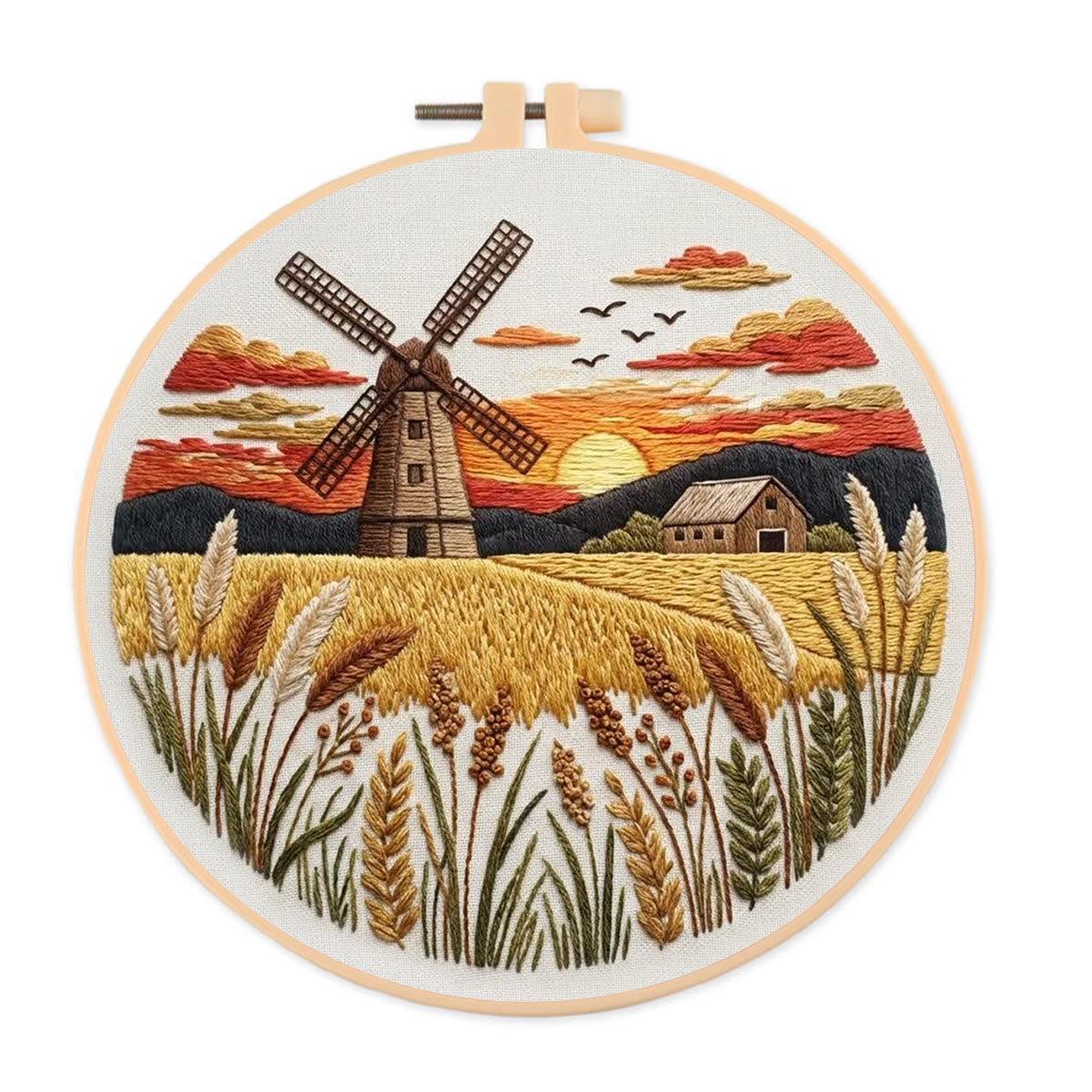 Rubbyoo Embroidery Kit - Countryside Sunset | Creative Landscape Craft | Handmade Desk Ornament