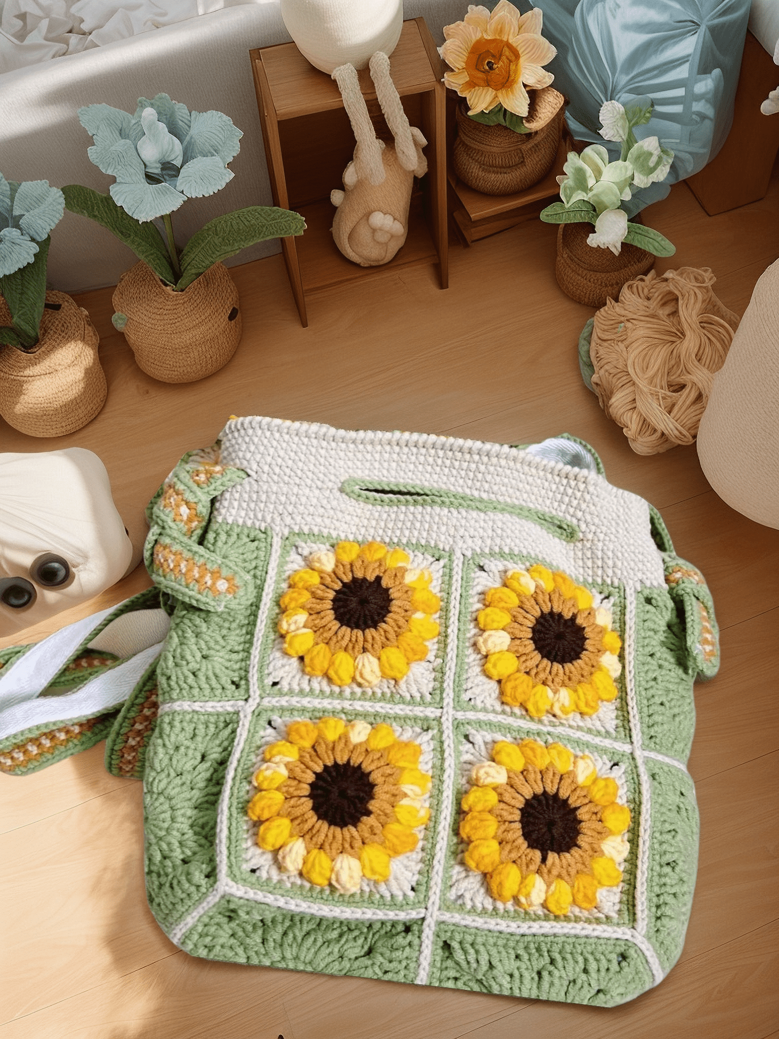 Handmade Crochet Bag - Sunflower Hand Bag | Adjustable Crossbody Bag | Gift For Her