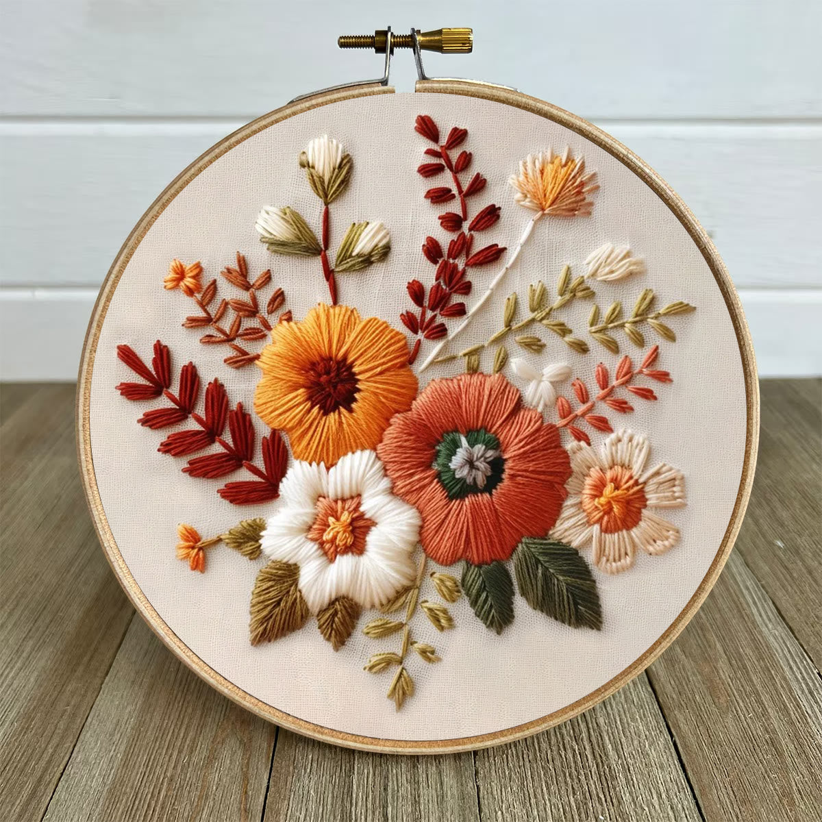 Rubbyoo Embroidery Kit- Autumn Blooms 2 | For Beginners Hand Stitch