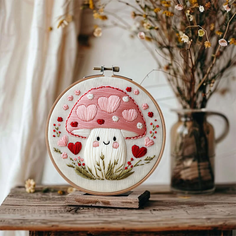 Rubbyoo Embroidery Kit -Love Shroom | Starter kit Needlework Gift