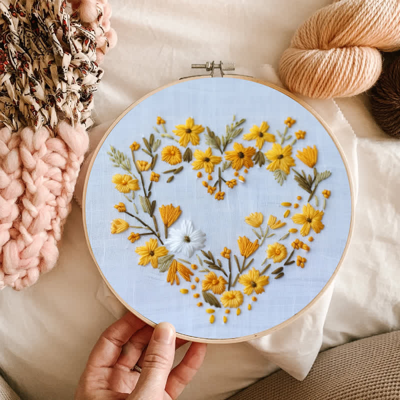Rubbyoo Embroidery Kit - Orange Floral Heart Wreath