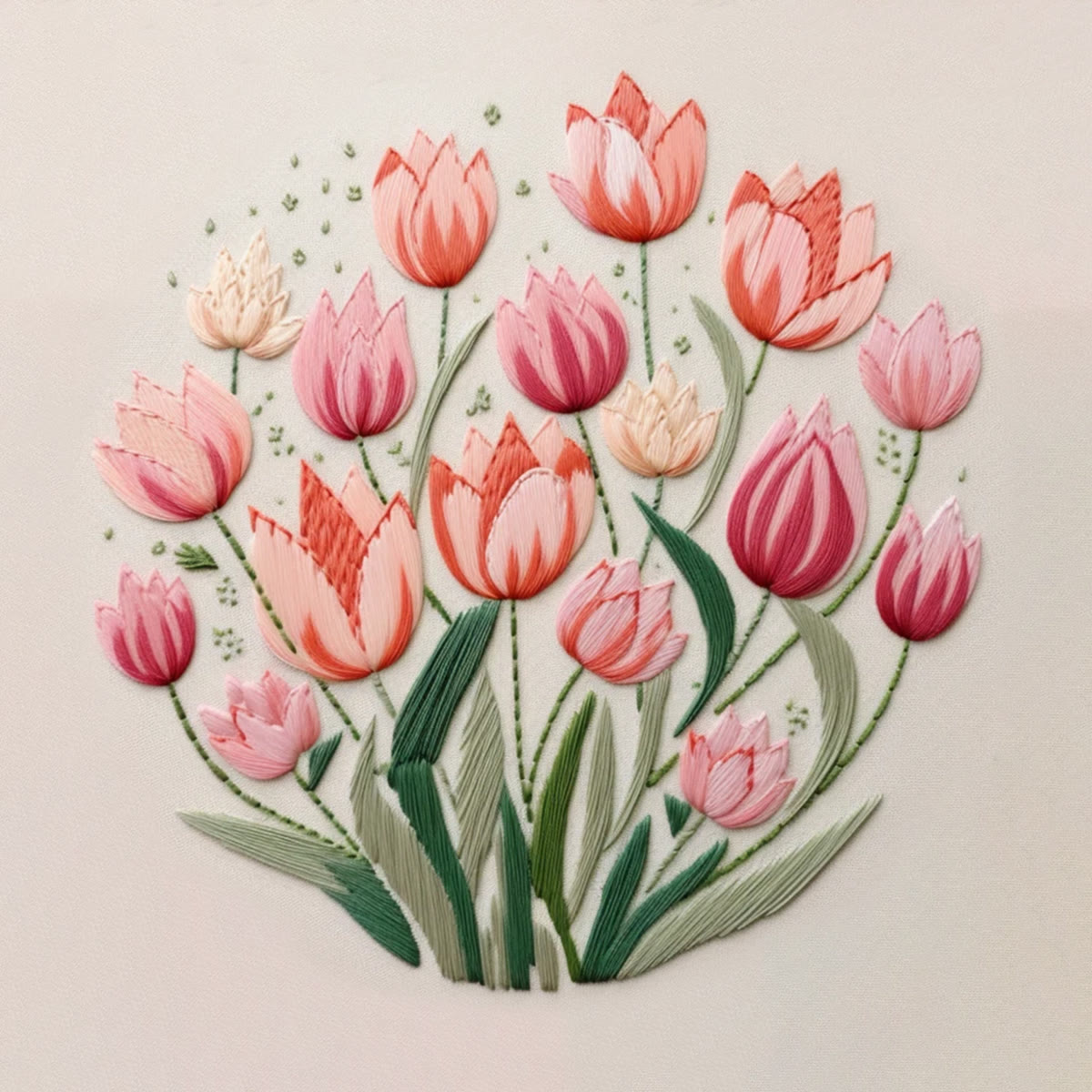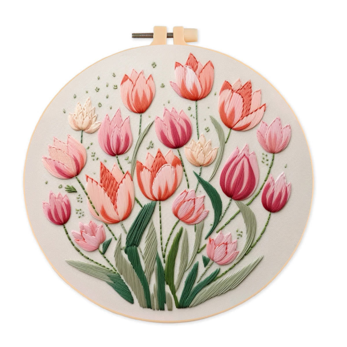Rubbyoo Embroidery Kit - Tulips Garden Art | Diy Stitch Crafts