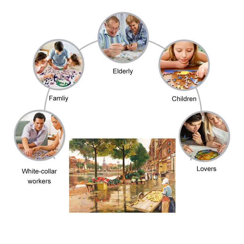 Rubbyoo Flower Market in Amsterdam by Heinrich Hermanns - Wooden Jigsaw Puzzle