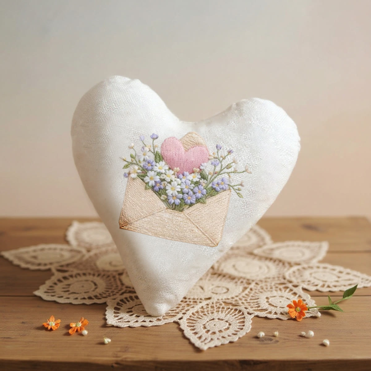 Rubbyoo Heart Embroidery Kit - Envelope Flower Heart | Charming Handmade Gift | Diy Needlecraft