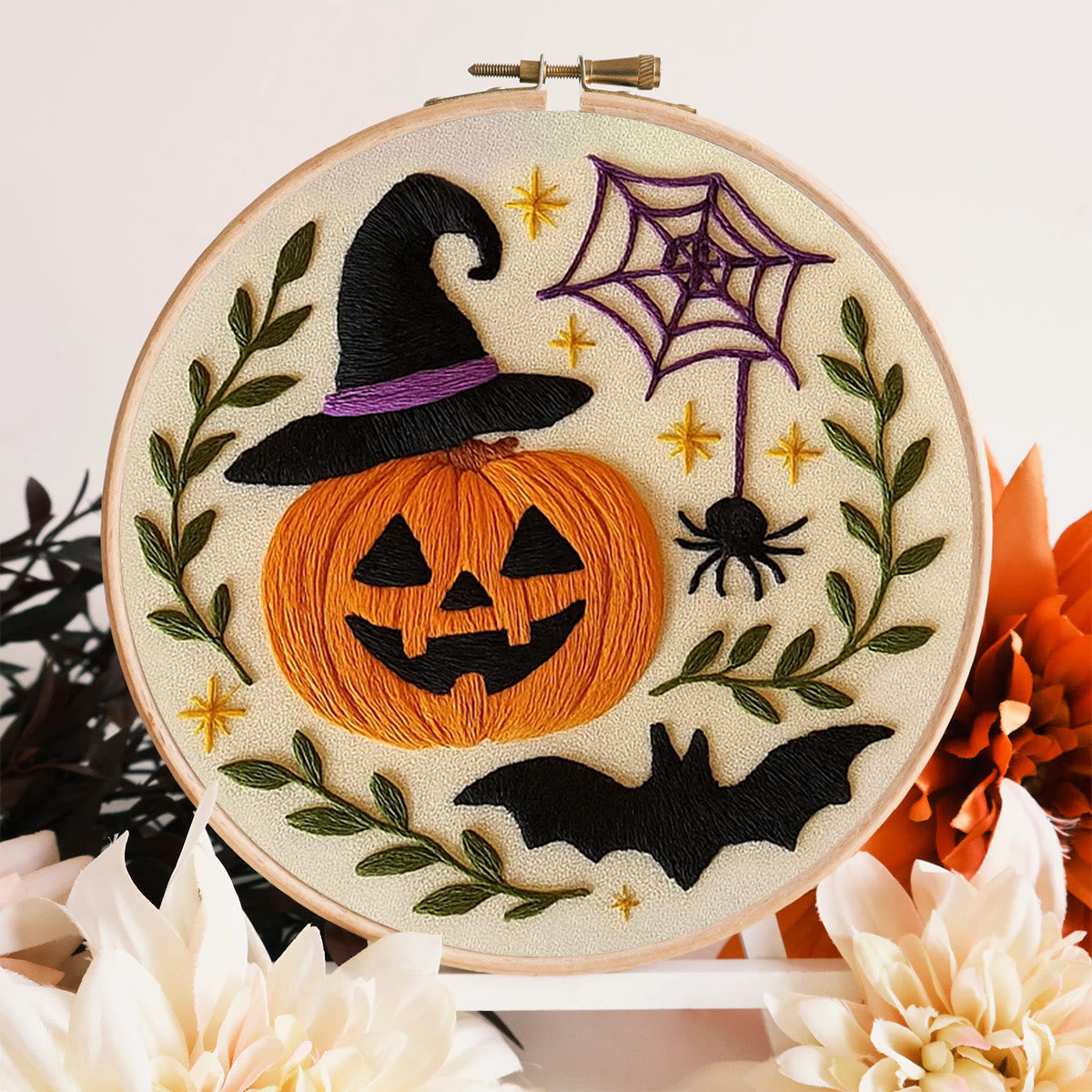 Rubbyoo Embroidery Kit - Pumpkin With Bat | Spook Halloween Decoration | Diy Holiday Handicraft
