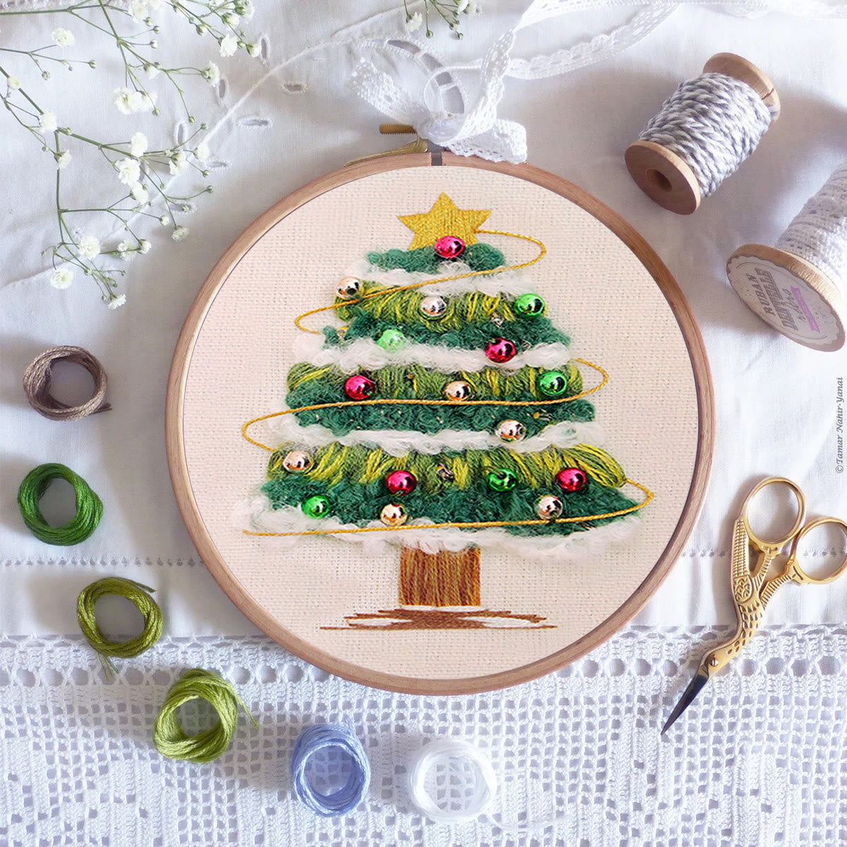 Rubbyoo Embroidery Kit - Shining Christmas Tree | Festive Holiday Decor | Perfect Needle Craft