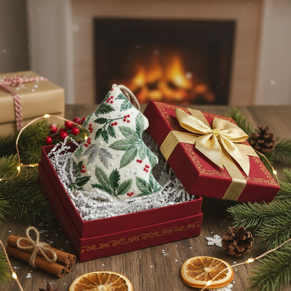 Rubbyoo Tree-shaped Embroidery Kit - Holly Leaves | Christmas Tree Ornaments | Holiday Party Gift
