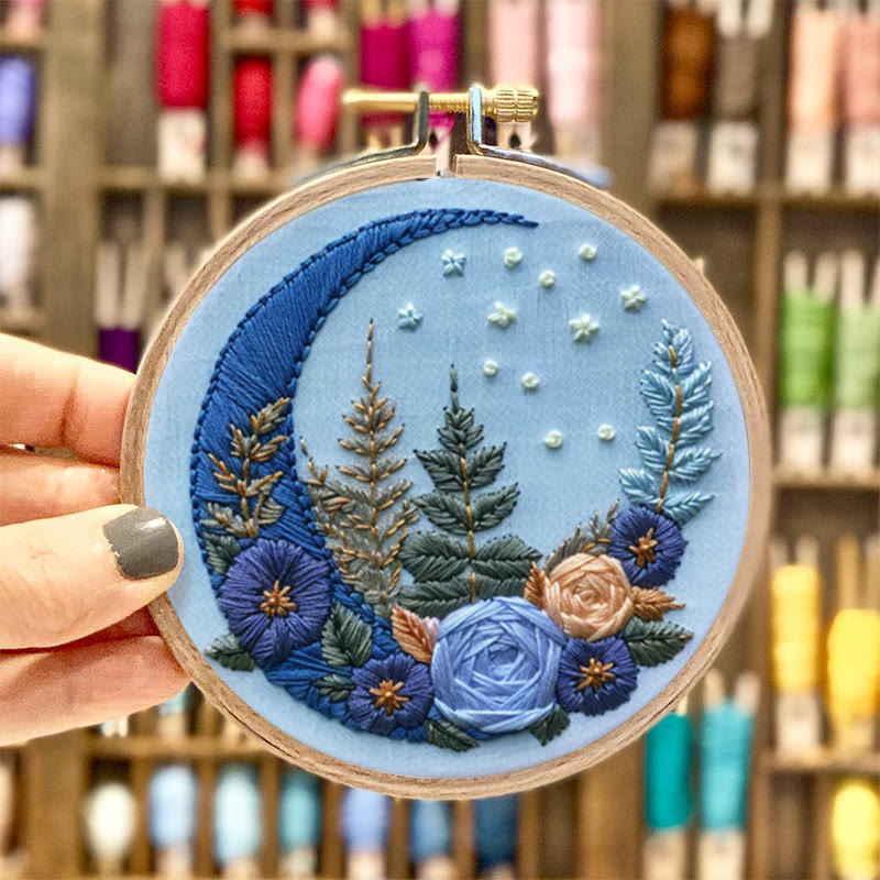 Rubbyoo Embroidery Kit - Floral Moom | Diy Celestial Craft | Perfect Home Decor