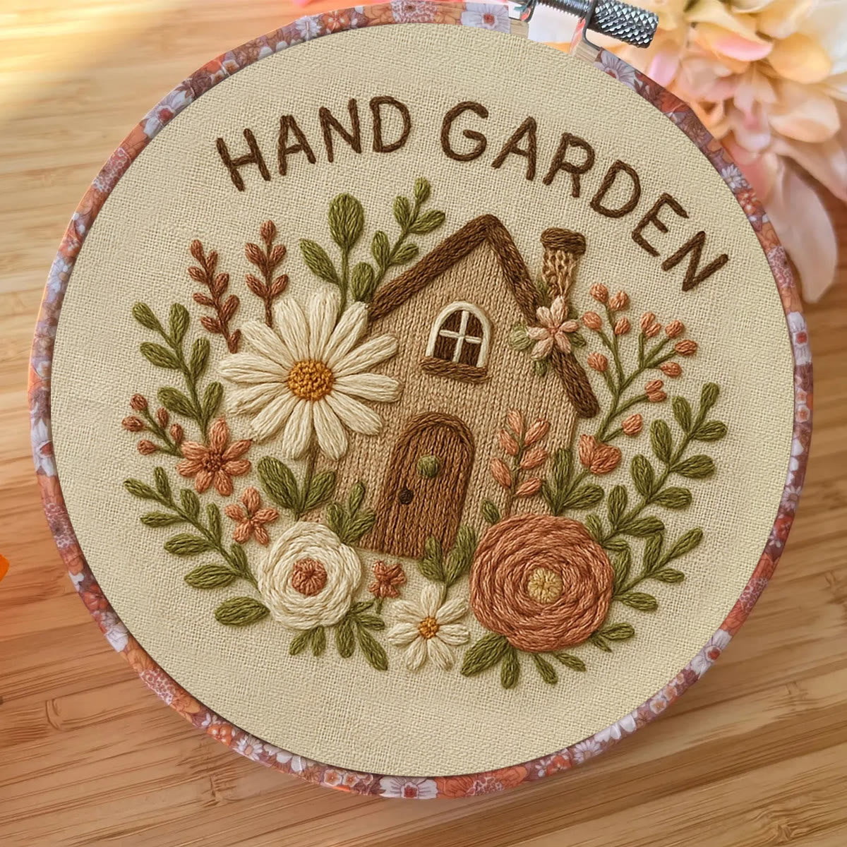 Rubbyoo Embroidery Kit - Hand Garden | Floral Needle Craft