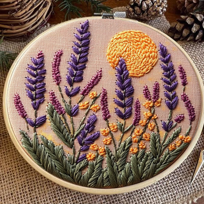 Rubbyoo Embroidery Kit - Lavender | Flowers Embroidery | Beginner Needlework Craft