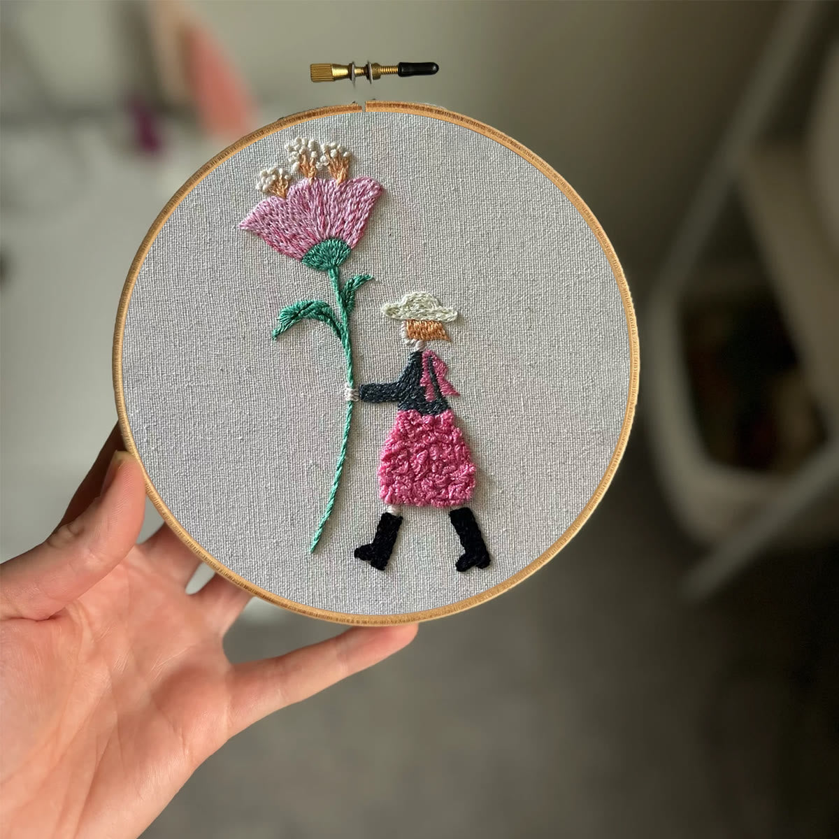 Rubbyoo Embroidery Kit-Pink Flowers Girl| Cozy Crafts Diy Kit For Women