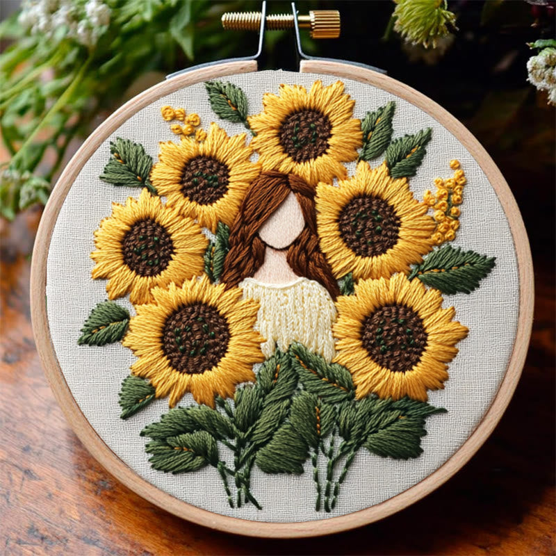 Rubbyoo Embroidery Kit - Sunflower Girl | Handmade Craft Gift