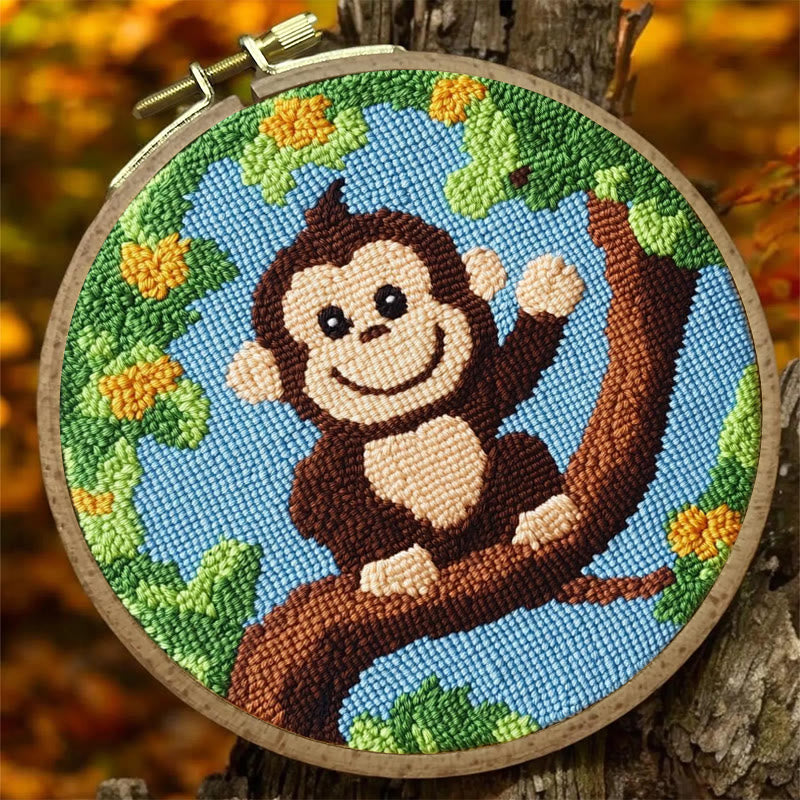 Climbing Monkey Punch Needle Kit - Adorable Needle Set | Crafts For Diy Enthusiasts