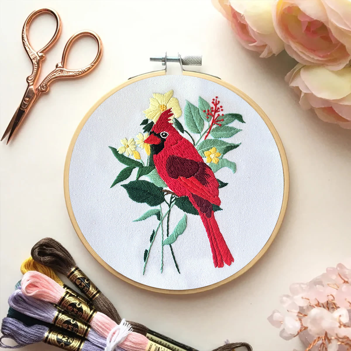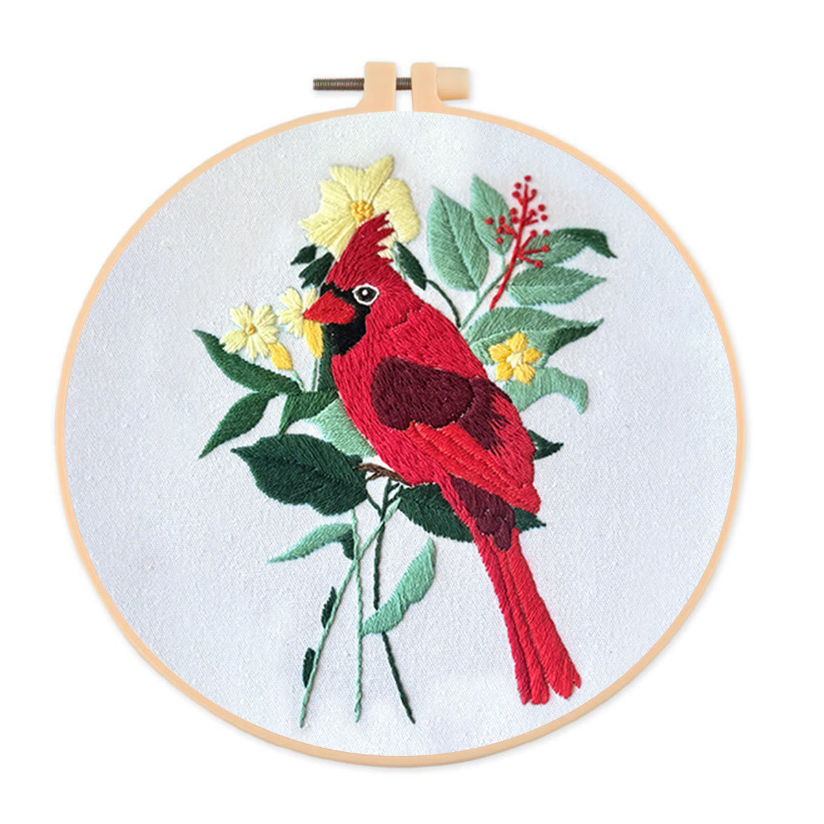 Rubbyoo Embroidery Kit- Cardinal Floral Stitch | Gift For Bird Lovers
