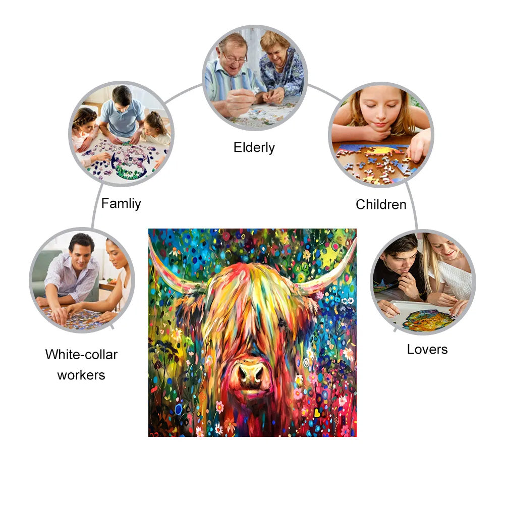 Colorful Highland Cow - Wooden Jigsaw Puzzle