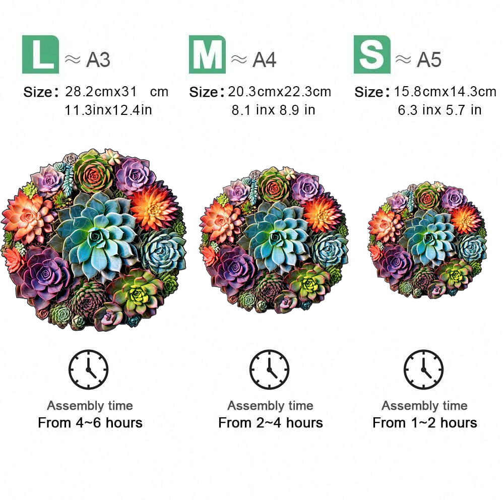 Succulent Plants - Wooden Jigsaw Puzzle - A5 is backordered and will ship as soon as it is back in stock.