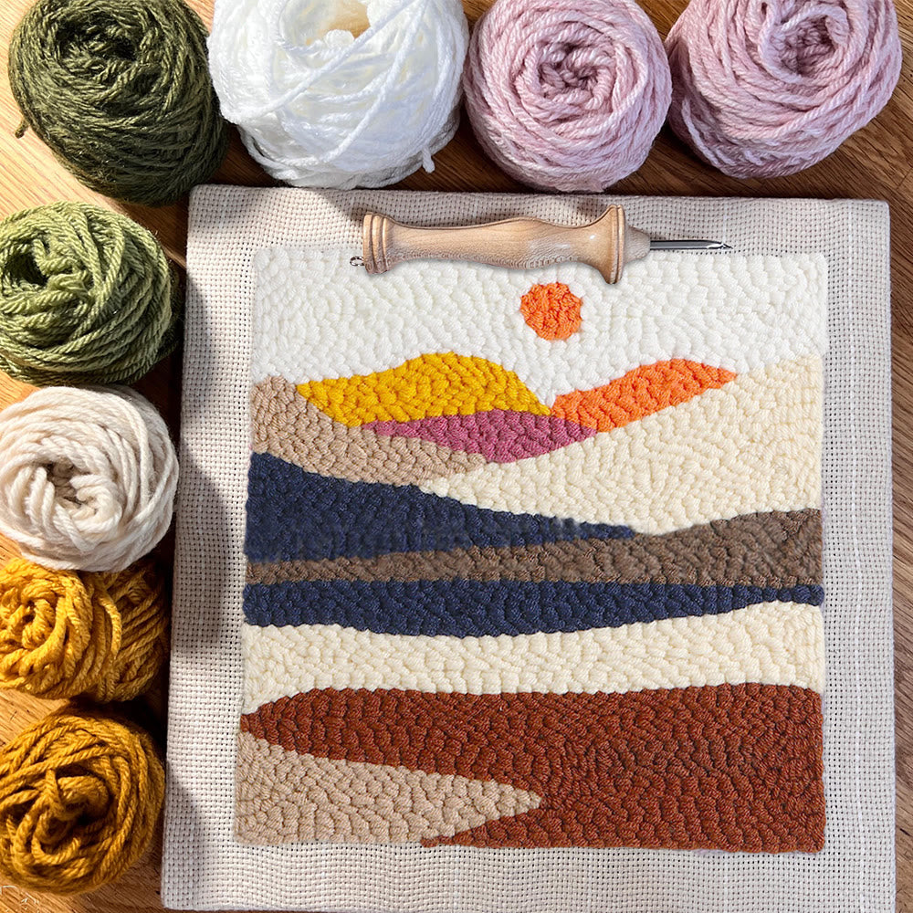 Desert Sunrise Square Punch Needle Kit - Beautiful Landscape Craft | Easy Needlework For Beginner