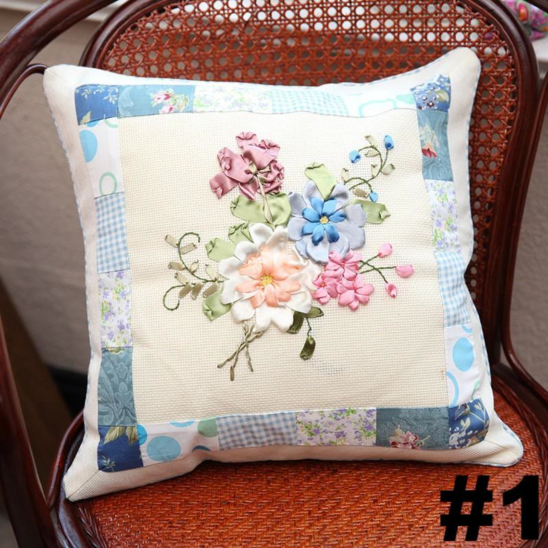 Embroidered Ribbon Floral Pillow Case Kits | Living Room Sofa Decoration | Nice Wedding Gifts
