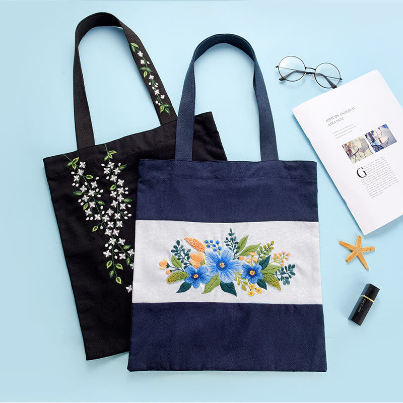Embroidery Canvas Tote Bag Kits | Beautiful Flower Shoulder Bag | Diy Market Bag