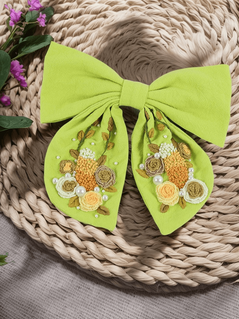 - The bow hairpin is made from soft, premium fabric.The embroidery is exquisitely done and the unique design combines traditional techniques with a modern twist.