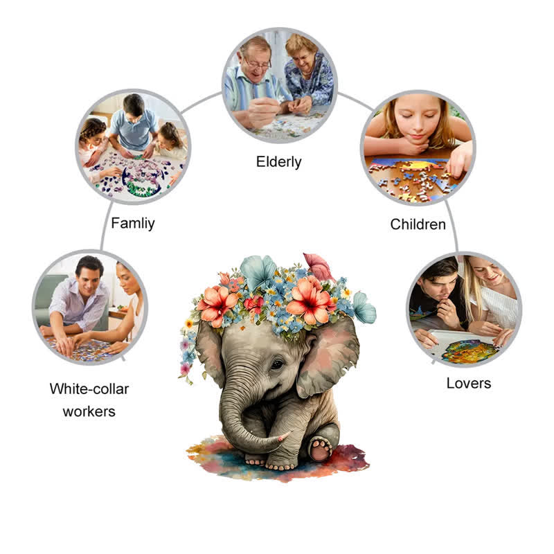 Cute baby elephant - Wooden Jigsaw Puzzle