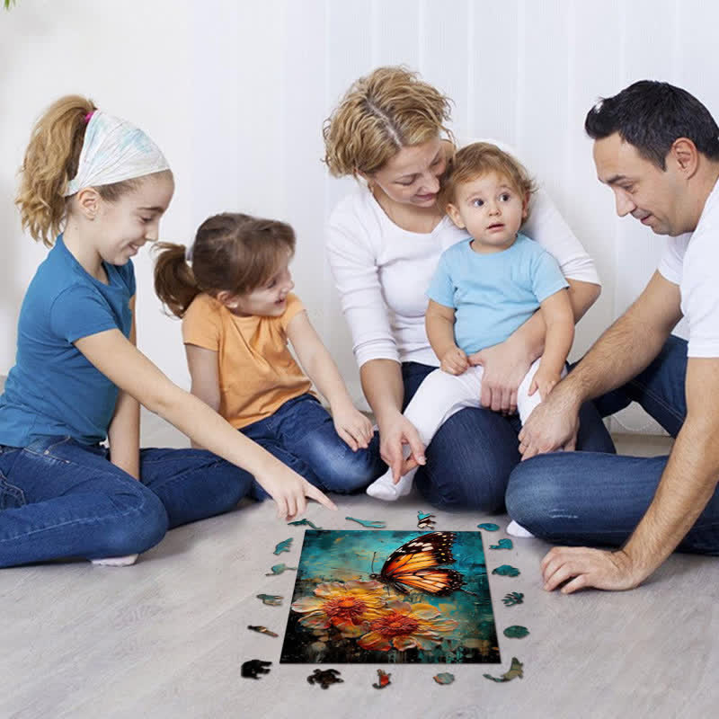 Floral Butterfly Painting - Wooden Jigsaw Puzzle