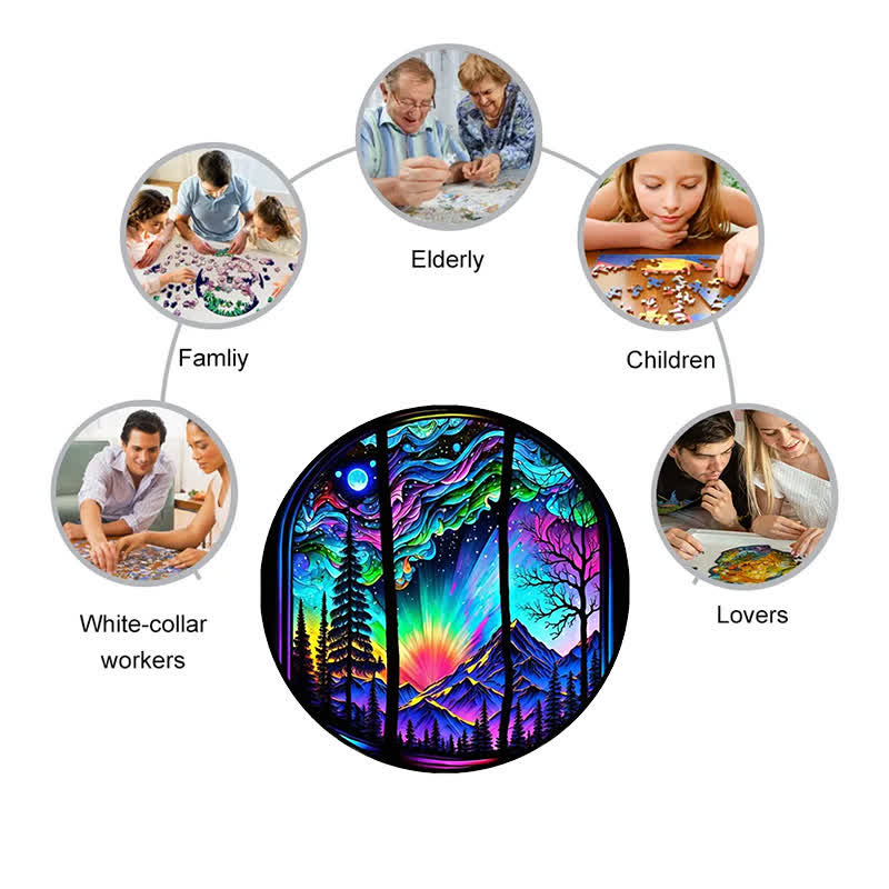 Rubbyoo Aurora Forest Mountain Night - Wooden Jigsaw Puzzle