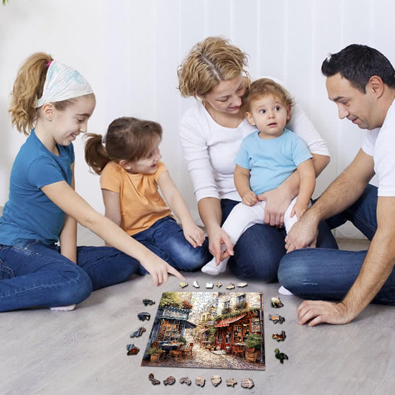 Rubbyoo Cafe in Narrow Alley - Wooden Jigsaw Puzzle