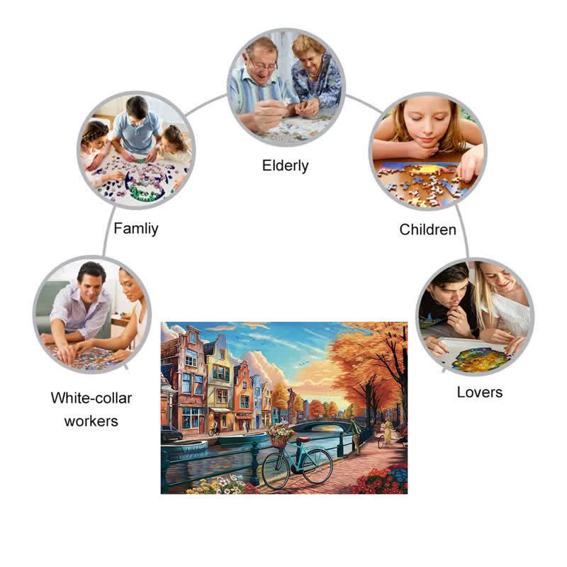 Rubbyoo Cycling Around Amsterdam - Wooden Jigsaw Puzzle
