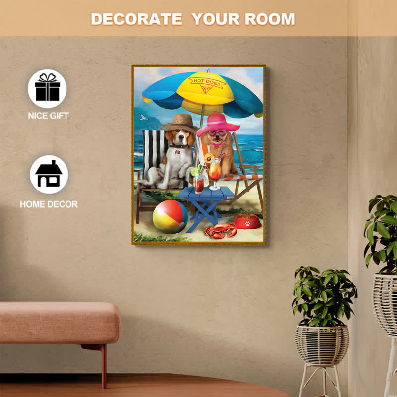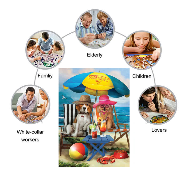 Rubbyoo Dogs On The Beach Funny - Wooden Jigsaw Puzzle