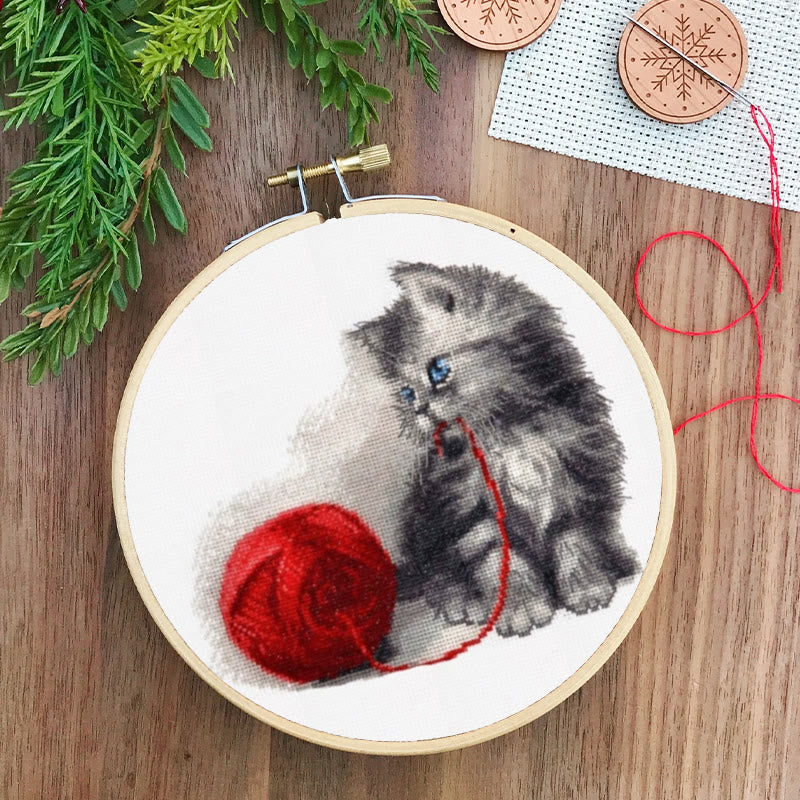 Cross Stitch Kit - Adorable Kitten | Perfect Gifts For Cat Lovers | Handmade Wall Hanging