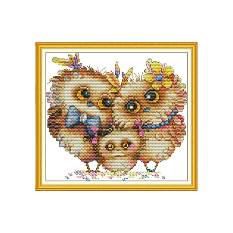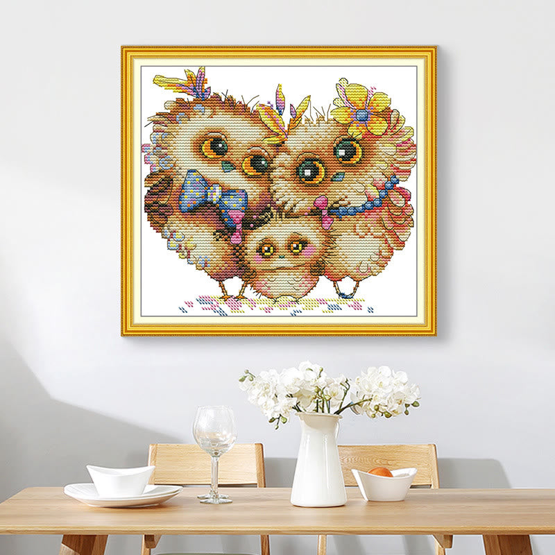 Cross Stitch Kit - Happy Bird Family | Animal Needle Artwork