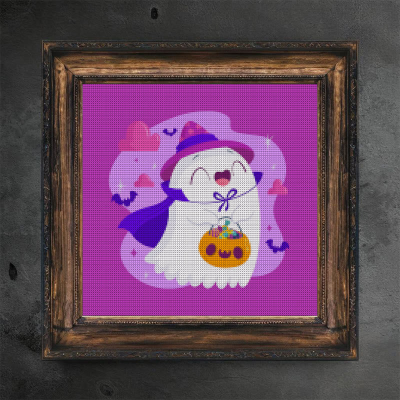 Cross Stitch Kit - Happy Ghost | Adorable Halloween Craft | Nice Wall Hanging Decor