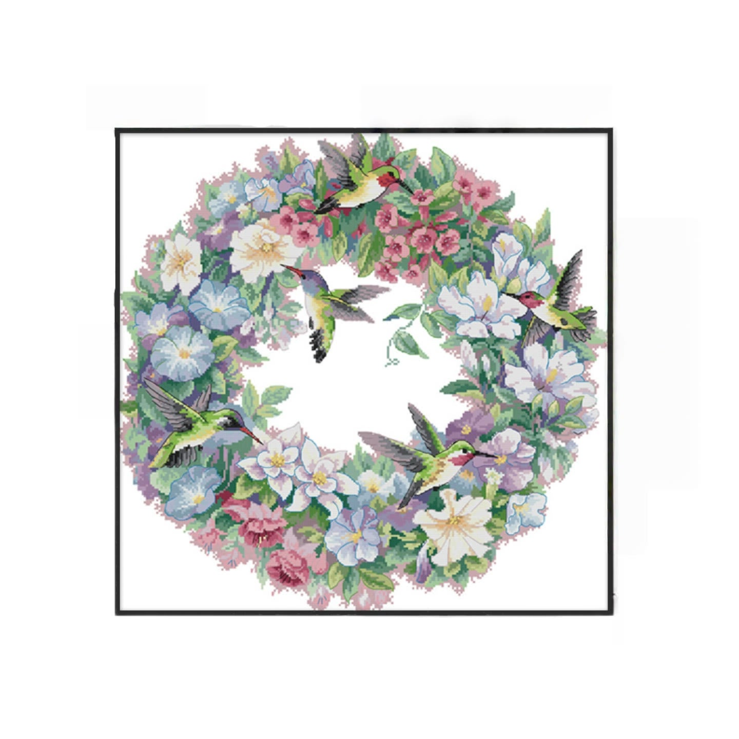 Cross Stitch Kit - Hummingbirds With Wreath | Easy Needlework Set