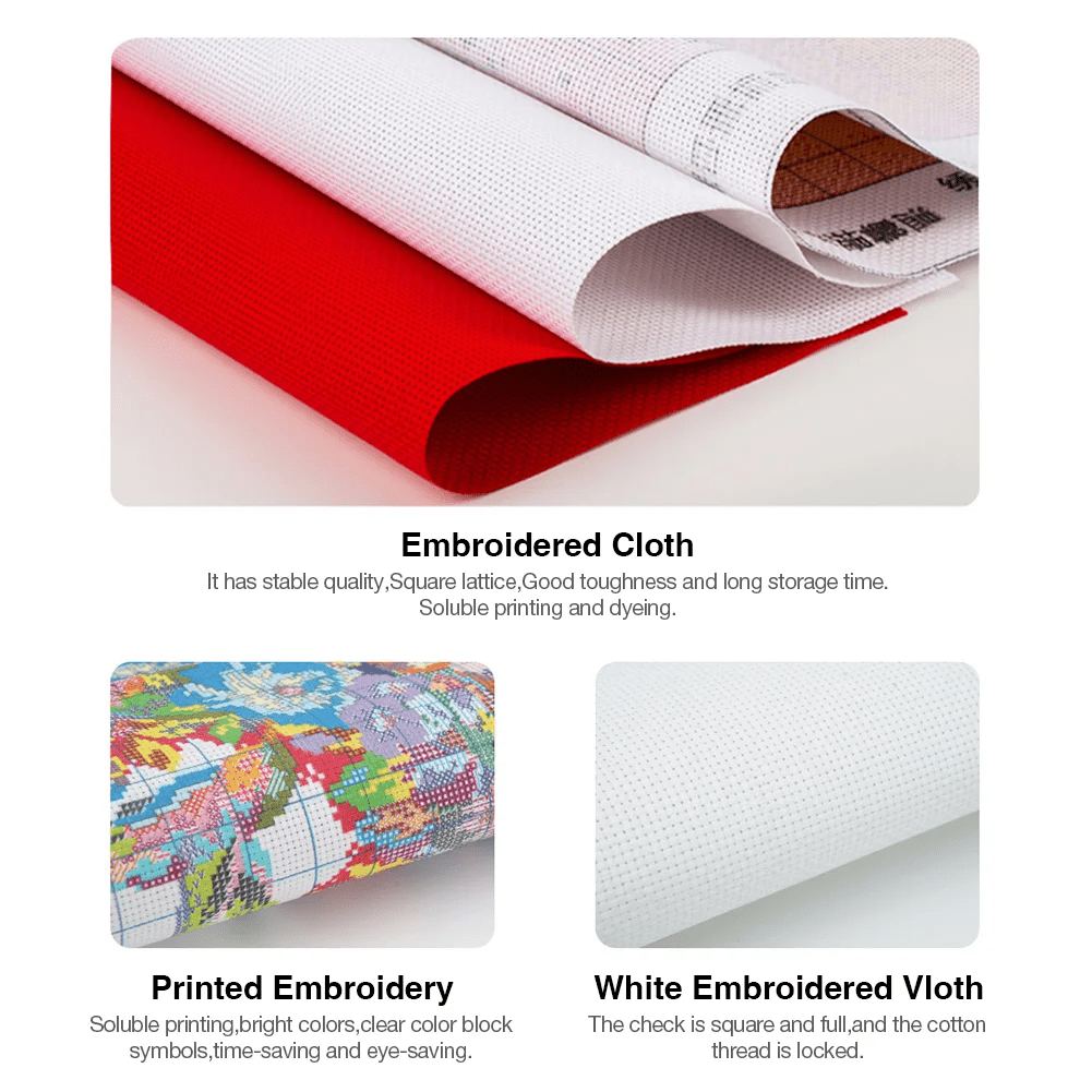 ◼The prints on the cross-stitch fabric are water-soluble. Please avoid exposing the fabric to moisture or water, and do not wash it before completion.