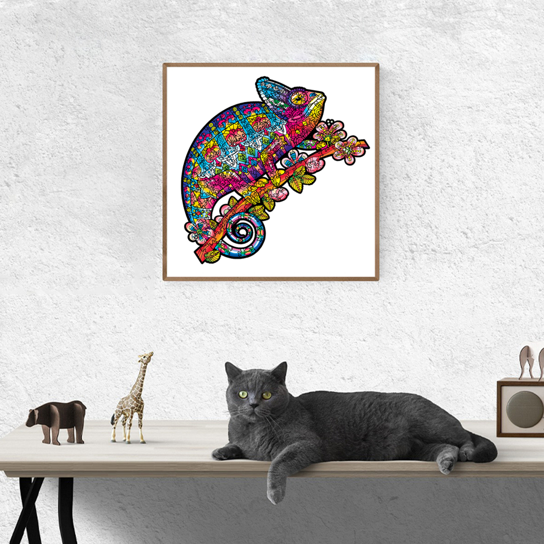 Curly Tail Floral Lizard - Wooden Jigsaw Puzzle - A4 / Carton Packaging is backordered and will ship as soon as it is back in stock.