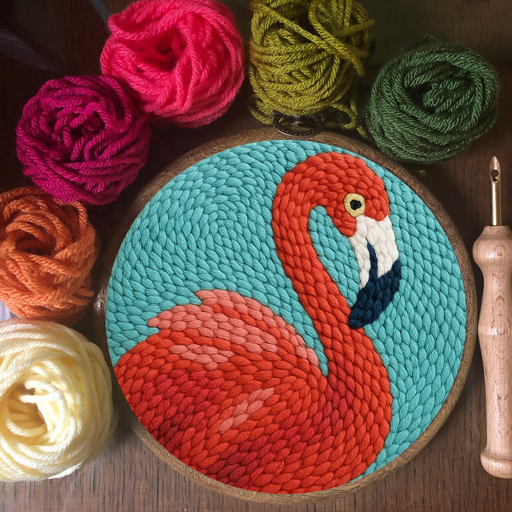 Flamingo Punch Needle Kit - Animal Handmade Craft | Easy Needle Set For Child