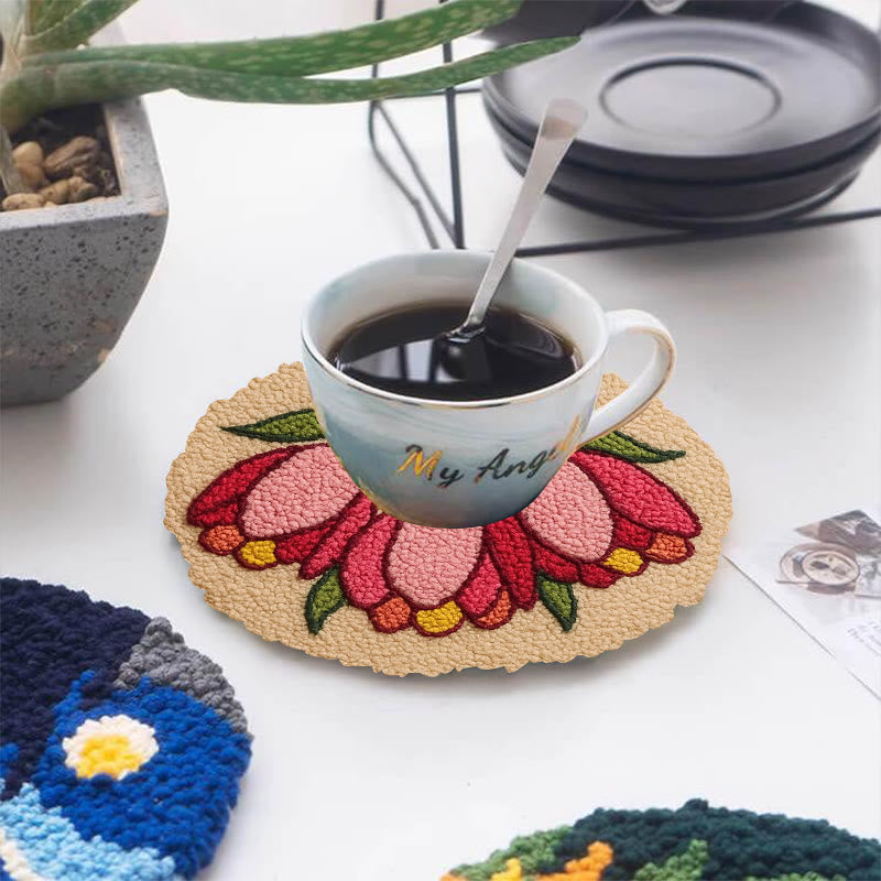 🥰 All-inclusive punch needle kit, unleash your creativity to make coasters in any shape, add a pop of color to your table.