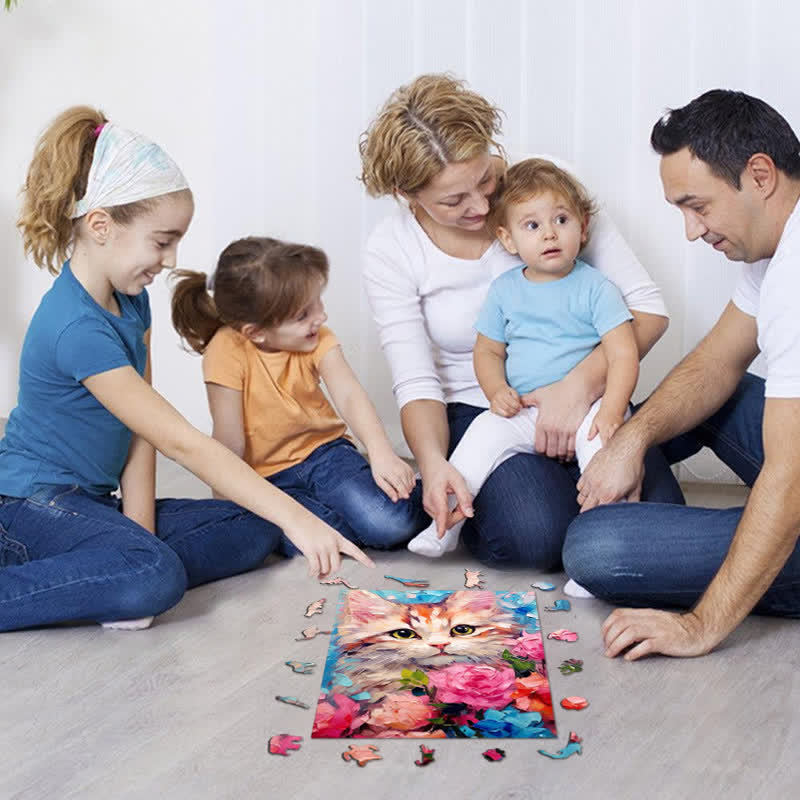 Funny Cat Painting - Wooden Jigsaw Puzzle