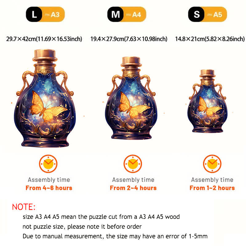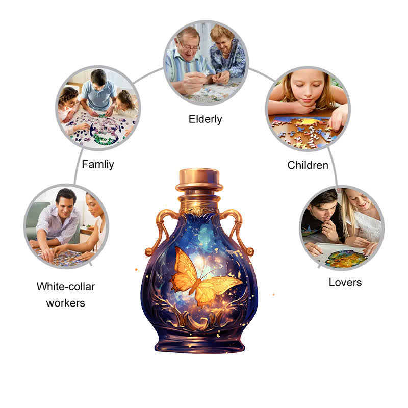Golden butterfly flying in glass bottle - Wooden Jigsaw Puzzle