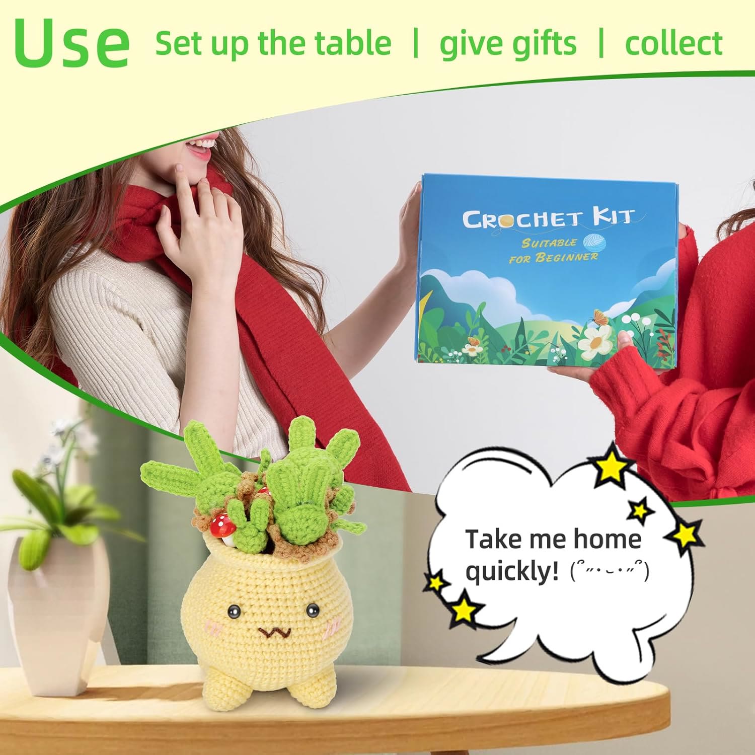 Handmade Yellow Potted Plant Crochet Kit - Adorable Crocheted Collections | Beginner-friendly Craft