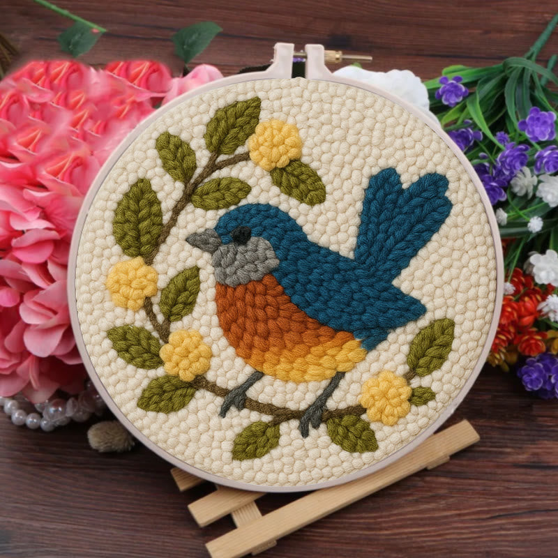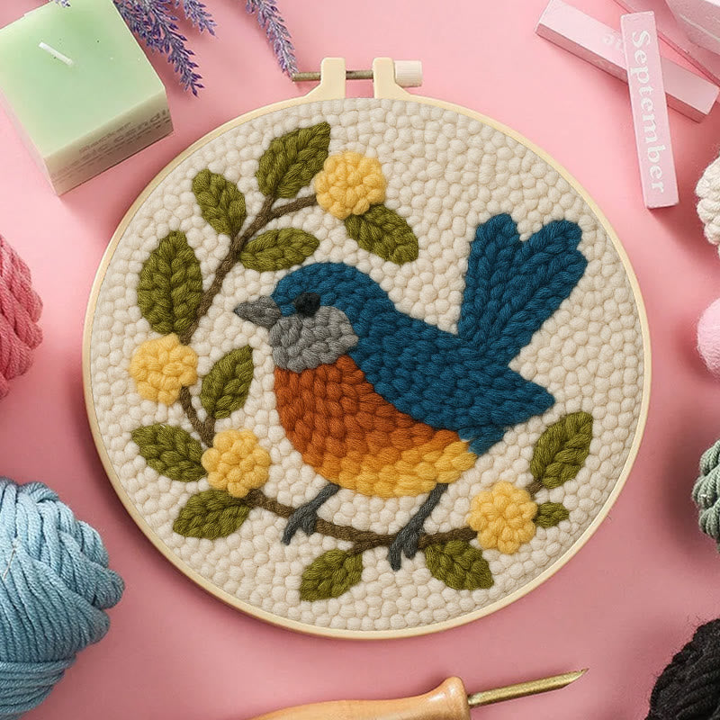 Happy Blue Bird Punch Needle Kit - Beginner Needle Set | Handmade Art Craft