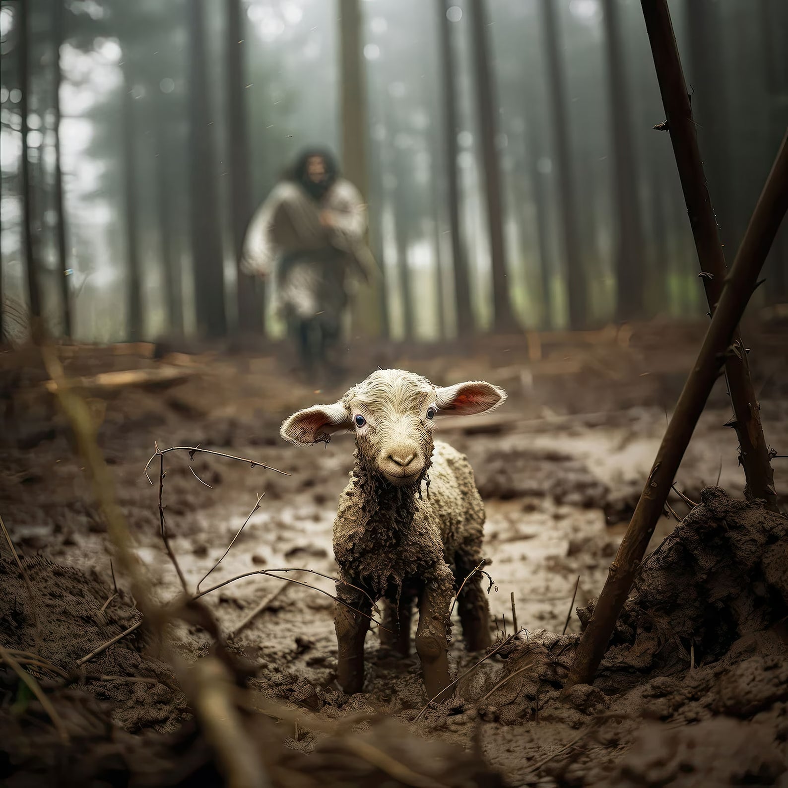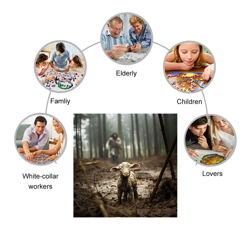 Jesus runs towards a lost lamb - Wooden Jigsaw Puzzle