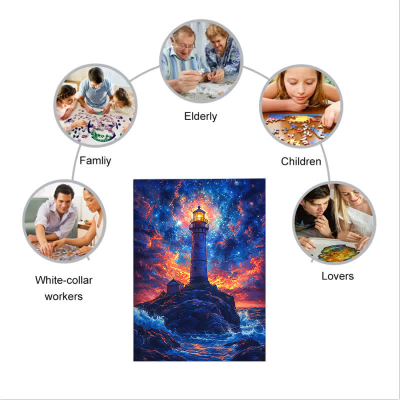 Lighthouse Under The Stars - Wooden Jigsaw Puzzle