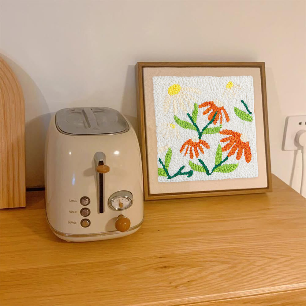 Little Flowers Square Punch Needle Kit - Diy Yarn Craft | Handmade Floral Ornament
