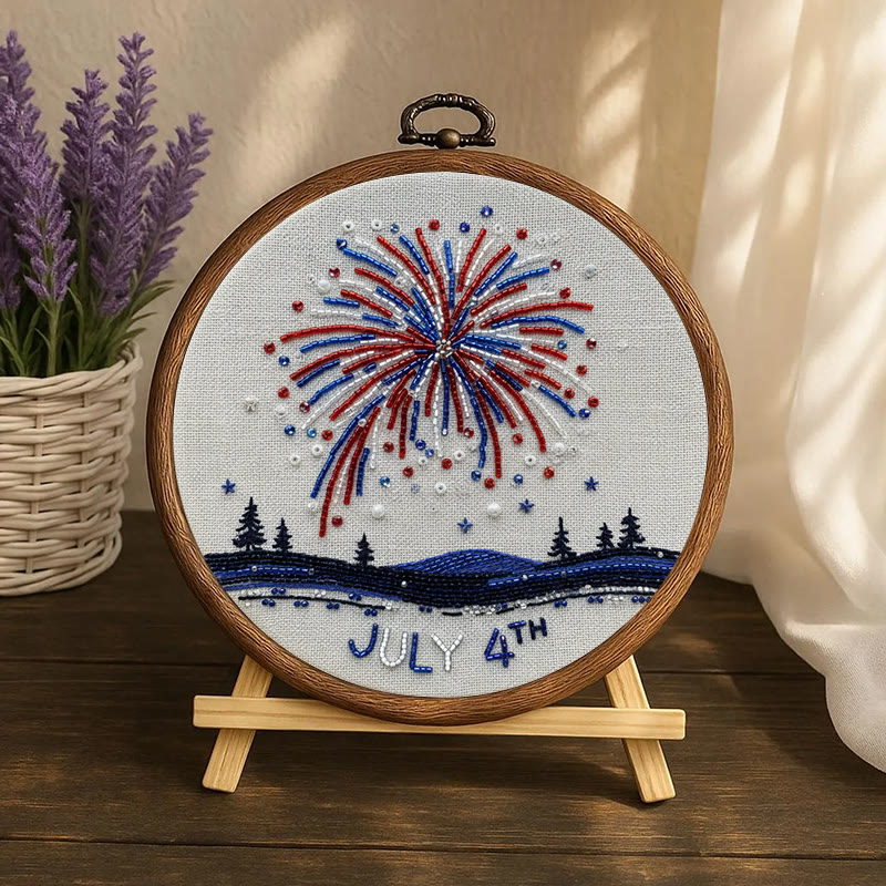 Rubbyoo Bead Embroidery Kit - July 4th Fireworks Celebration | Diy Handmade Artwork | Perfect For Decoration