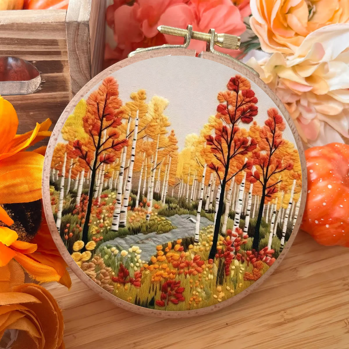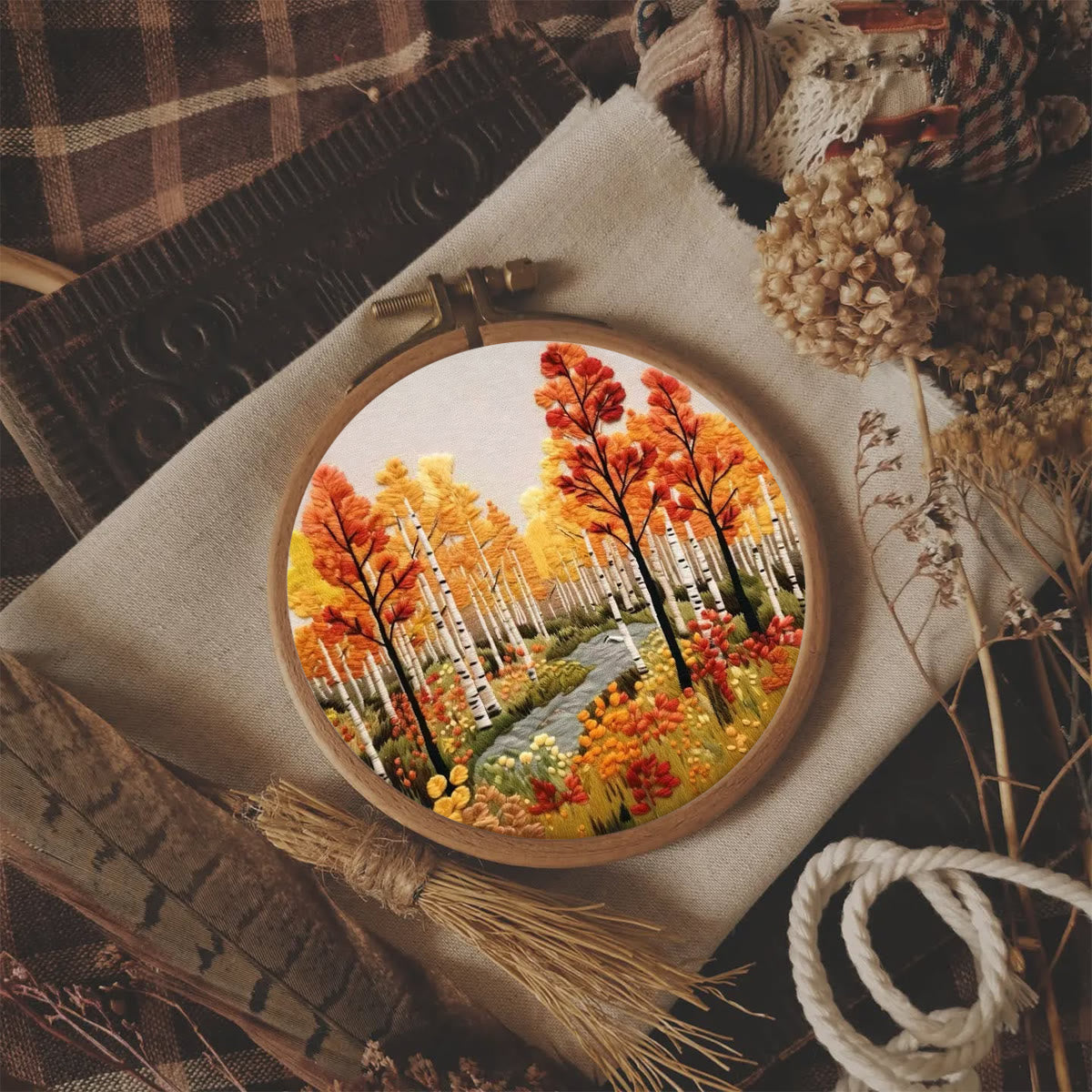 Rubbyoo Embroidery Kit - Autumn Street | Charming Landscape Craft | Perfect For Home Decor