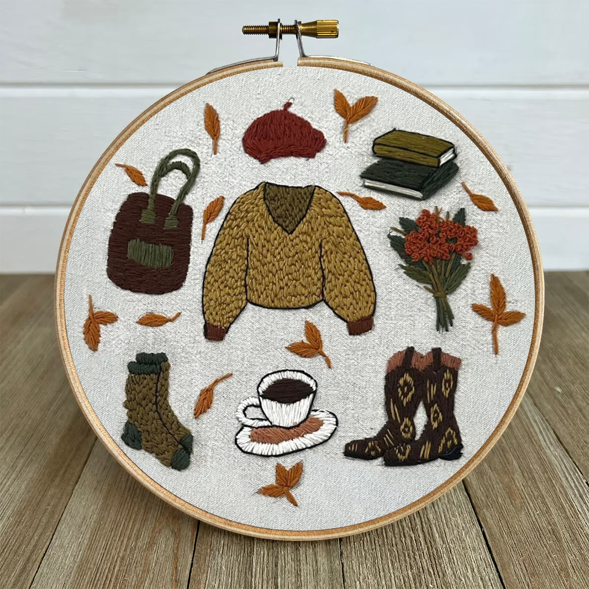 Rubbyoo Embroidery Kit- Autumn Sweatshirt| Diy Kit For Beginners Cozy Crafts