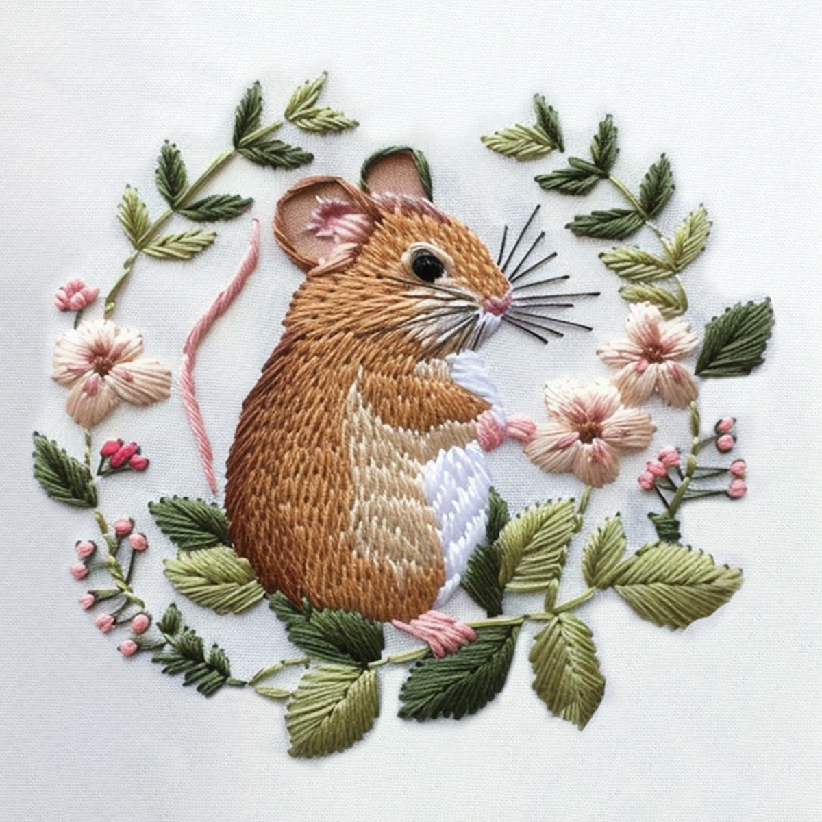 Rubbyoo Embroidery Kit - Floral Mouse | Stitiching Needlework Craft