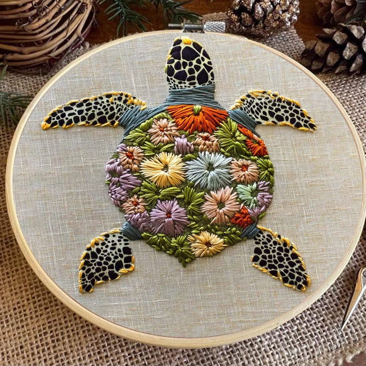 Rubbyoo Embroidery Kit - Floral Turtle Design | Nature-inspired Handcrafted Art | Ideal For Creative Crafters